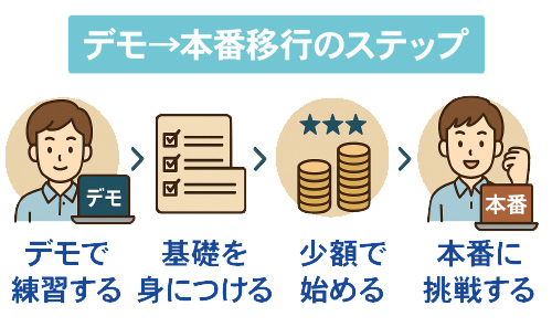 デモで十分に練習してから少額取引に進めば、初心者でも安心してステップアップできます。